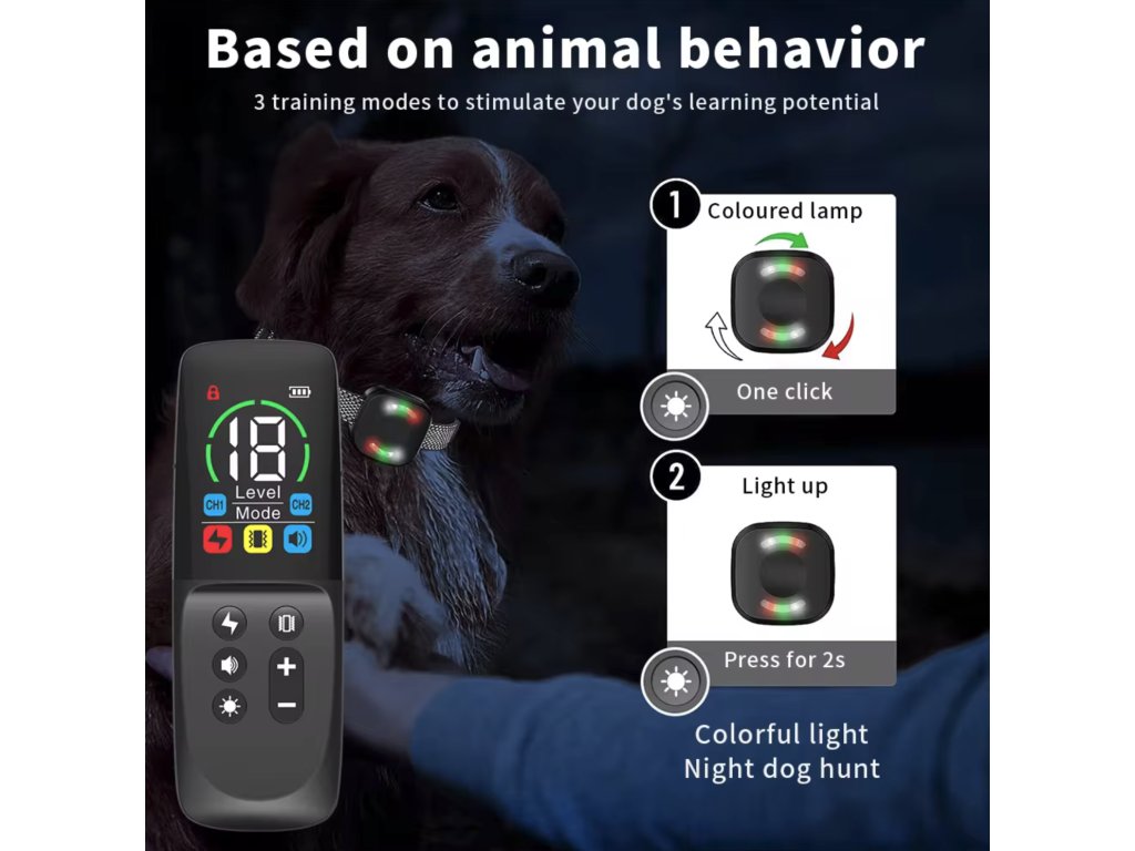 Vodotesný elektronický obojok Patpet D14T je určený pre výcvik psa s dosahom 800m so štyrmi funkciami - vibrácie, elektrického impulzu, zvuku, svetla. Súčasťou balenia je aj nabíjačka, nie je potrebné dokupovať batérie. Vodotesný prijímač zaručí stabilitu pri akomkoľvek počasí a kúpaní. Ovládanie je veľmi jednoduché a intuitívne.