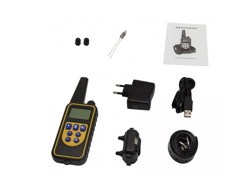 - Prijímač - Vysielač - Obojok - Nabíjačka - Sada elektrod - Testovacia dioda - Návod |
